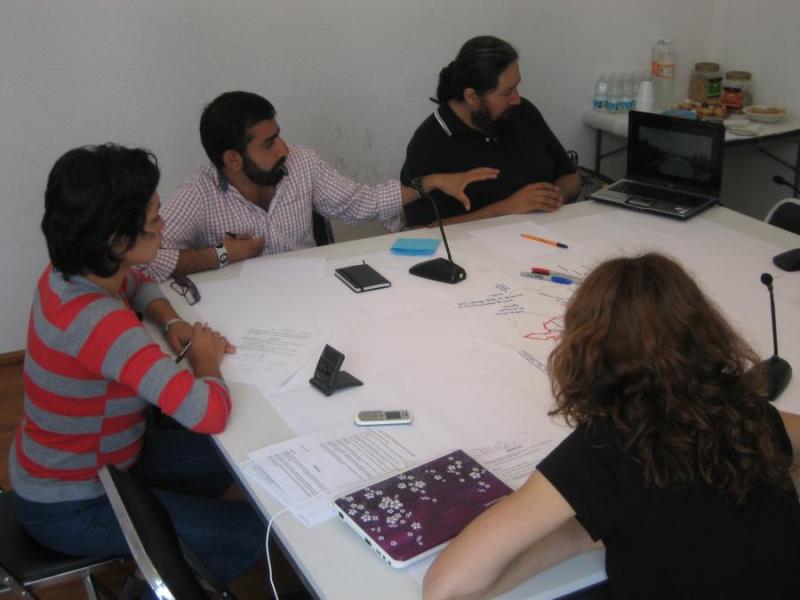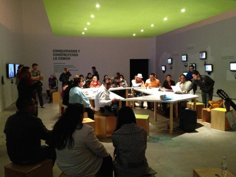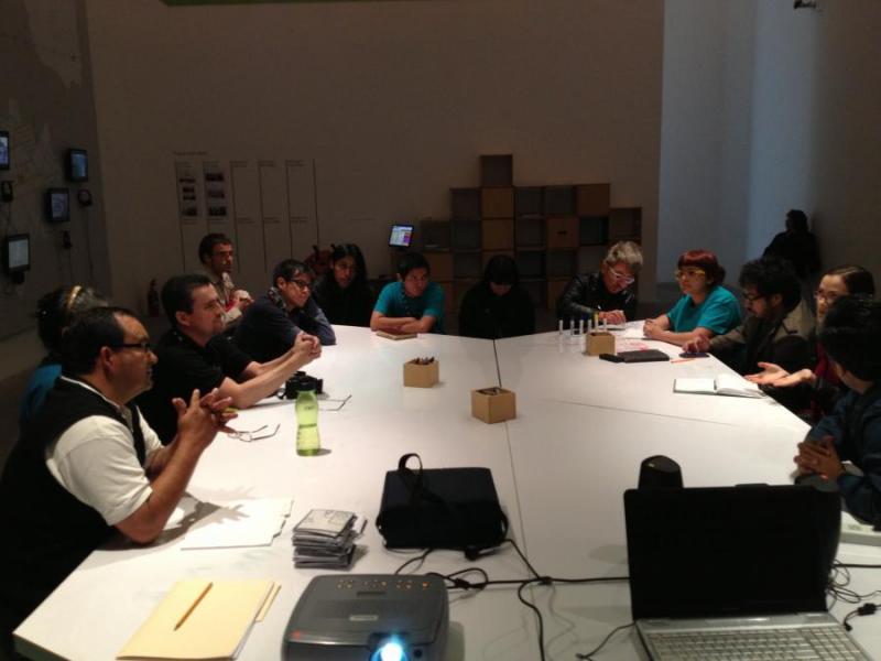 Grupo de trabajo y Mariano Salazar, Aurelio Monjaráz (Cananea), Fernando Palma (Calpulli).
