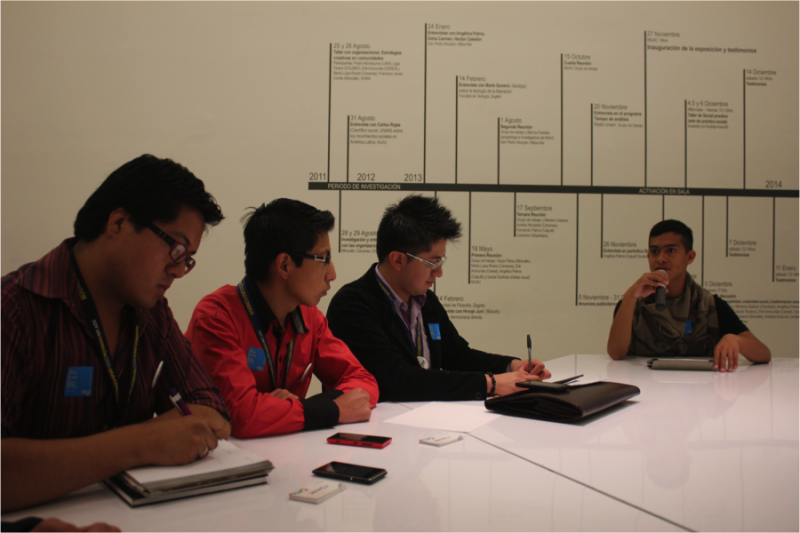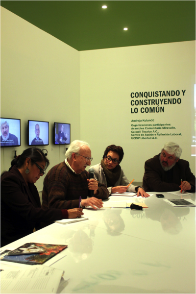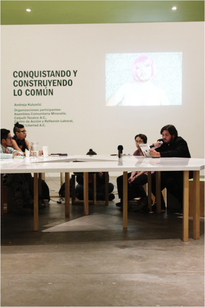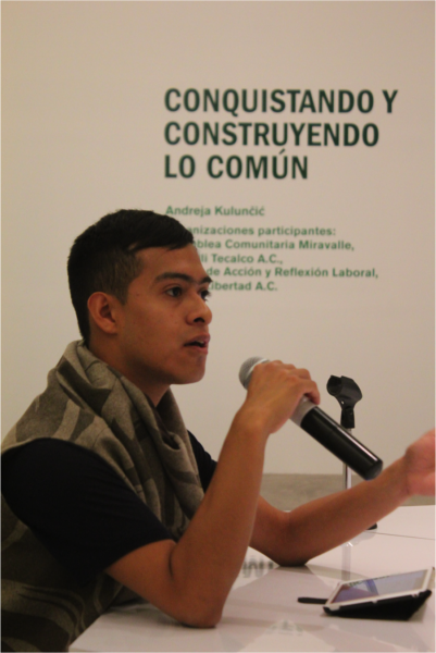 Para la apertura de los testimonios nos acompañó Isabel Peña del Centro de Reflexión y Acción Laboral (CEREAL), quien nos platicó el trabajo de asesoría que realizan con los trabajadores de diversas zonas de la República para la defensa de sus derechos laborales. Por otro lado, Antonio Nieto, de la organización Hoja Urbana nos habló sobre la producción artística que elaboran desde las periferias como una alternativa de expresión y difusión cultural.